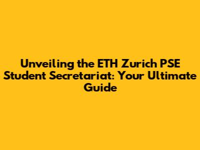 Unveiling The ETH Zurich PSE Student Secretariat: Your Ultimate Guide